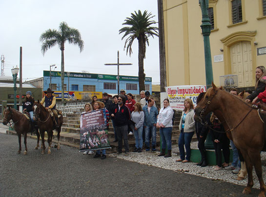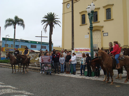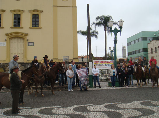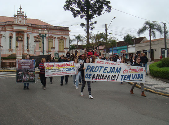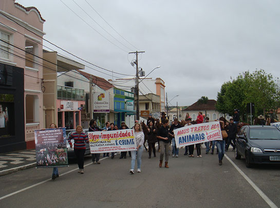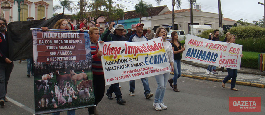 Os manifestantes concentraram-se em frente à Igreja Matriz e depois percorreram o entorno da praça Mal. Floriano Peixoto, sempre com as faixas abertas e clamando por justiça, além de mudanças na lei para que se apliquem penas mais severas em casos como esse recente de Palmeira, que comoveu muitas pessoas e gerou revolta devido à morte das éguas, agravado pelo fato elas estarem prenhes quando foram mortas.