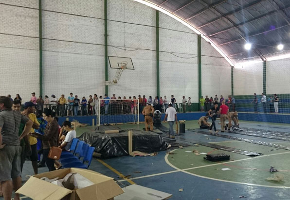 Algumas das vítimas de Ipiranga, que estão sem condições de retornar às suas casas, estão abrigadas na quadra Adir Fernandes, na região central da cidade.