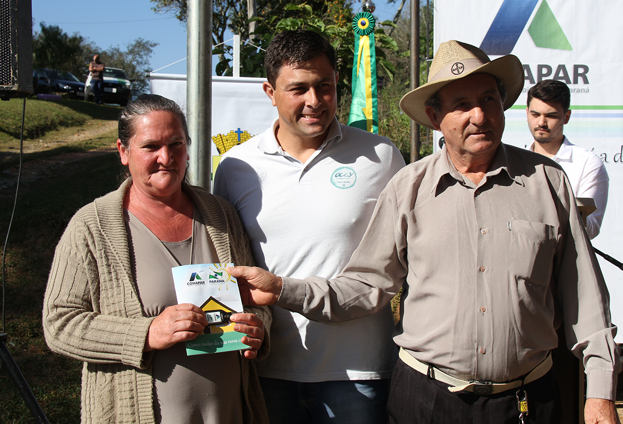 As famílias que receberam as chaves foram de Abel Costa e Joseli Werner, de Campestrinho, Paulinho Rain e Roseni Ferreira Rain, de Campestrinho, Benjamim Batista e Leoni Bassani Batista, de Poço Grande, Gilberto Batista e Rosenilda Ferreira, de Poço Grande, Dair Seixas e Maria Nelsi Seixas, de Rincão do Coxo, Divanilda Aparecida Vieira e Clairton Vieira, de Turma, Lucas Przyeysewski e Marli da Conceição Bastos, de Colônia Francesa, e Marcia Ferreira Batista e Jurandir Batista, de Queimadas.