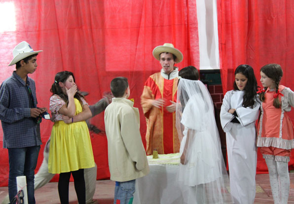 Jovens realizam apresentações culturais durante festa julina