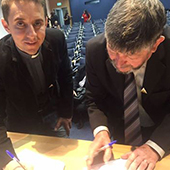 A assinatura do termo aditivo de adaptação de outorga de Onda Média (OM) para Frequência Modulada (FM) foi realizada nesta segunda-feira (7) no Ministério das Comunicações em Brasília/DF. De Palmeira, participaram o Padre Osni dos Anjos e o diácono José Casemiro Wansovicz, presidente e vice da Fundação Nossa Senhora Imaculada Conceição.