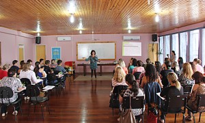 Reunindo educadoras, pedagogas e professoras que trabalham com crianças de idade inferior a cinco anos, a mestre em educação Adriana Ribas explicou às professoras como a condução do trabalho deve ser realizado na principal fase de desenvolvimento e aprendizagem, instigando a trabalhar com a criatividade e descoberta dos cinco sentidos sensoriais. “Ao nascer, o ser humano possui limitações e depende integralmente de cuidados e auxilio no seu desenvolvimento, isso não muda quando a criança começa a frequentar a escolar. A função das educadoras é fazer com que a criança busque o descobrimento, afinal, o conhecimento não foi feito para ficar fechado,” relatou Adriana.