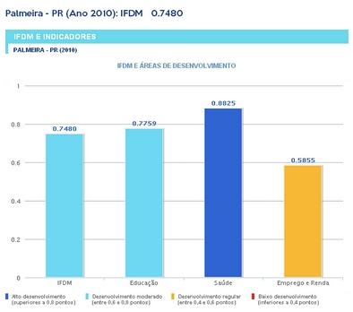 O IFDM tem quatro faixas de desenvolvimento, segundo o índice: alto, moderado, regular e baixo. Dos índices obtidos por Palmeira nos três requisitos que compõem o índice consolidado do IFDM, o que tem a pior situação é justamente o que melhorou mais no estudo divulgado este ano. Este requisito está dentro de uma faixa considerada pela instituição como de desenvolvimento regular, com índices entre 0.4 e 0.6.