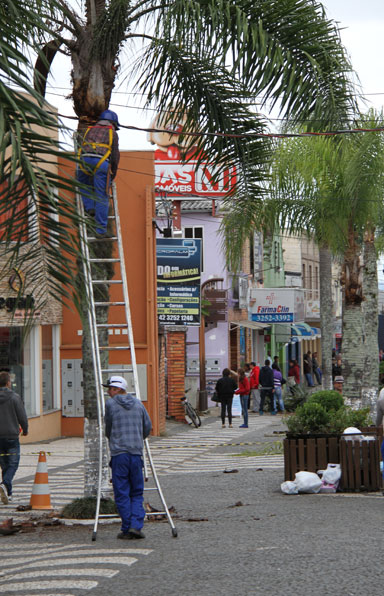 Na última semana a Secretaria Municipal de Meio Ambiente iniciou a poda periódica das palmeiras localizadas na rua Conceição. A ação que consiste na retirada dos galhos maiores é importante para direcionar o desenvolvimento da copa contra a tendência natural do modelo arquitetônico da espécie, compatibilizando assim a árvore com os espaços e equipamentos urbanos.