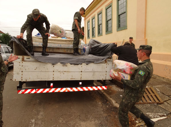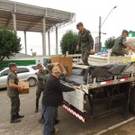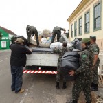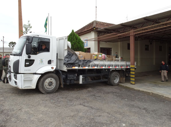 Na sequência, o veículo foi até a sede do Provopar de Palmeira, onde recebeu mais carga. No local foram carregados mais colchões, cestas básicas, roupas, calçados e outra cama. Soldados do Exército Brasileiro e do Corpo de Bombeiros auxiliaram no carregamento do caminhão. O veículo foi cedido pela Prefeitura de Palmeira.
