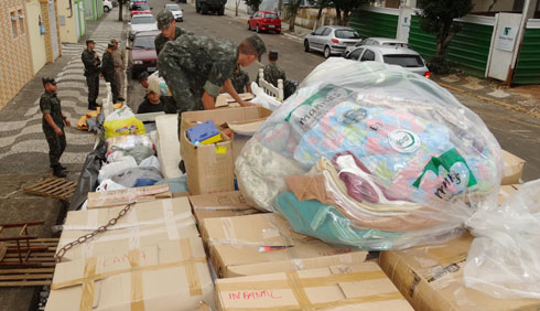 O caminhão começou a ser carregado na unidade local do Corpo de Bombeiros com colchões, cobertores, garrafas de água, dezenas de caixas com alimentos e uma cama, tudo arrecadado pela Associação Amigos da Santa Casa de Palmeira.