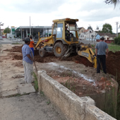 Alguns funcionários e máquinas trabalham diariamente no local da obra, que deve ser concluída e entregue em breve.