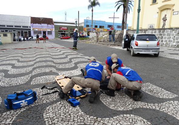 A simulação teve início com a colisão entre um automóvel e um poste localizado próximo a escadaria da Igreja Matriz. Em seguida o Corpo de Bombeiros foi acionado para prestar atendimento e a Polícia Militar para prestar apoio ao acidente.