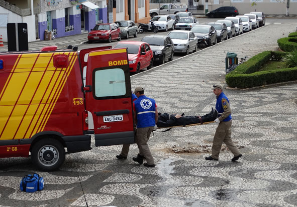 O Corpo de Bombeiros de Palmeira realizou uma simulação de ocorrência na manhã de quinta-feira (2), na Praça Marechal Floriano Peixoto.  A ação também serviu parar comemorar o Dia do Bombeiro e atraiu a curiosidade de dezenas de pessoas que trabalham nas proximidades ou que transitavam pelo local.