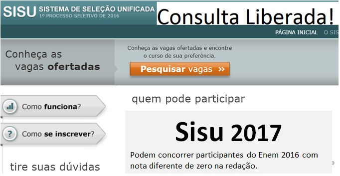 Nesse processo, valerá a nota do Enem 2016. Para participar, os candidatos não podem ter tirado 0 na redação do Enem. Além disso, algumas instituições estabelecem notas mínimas para ingresso em determinados cursos. Ao todo, mais de 6,1 milhões fizeram o Enem no ano passado.