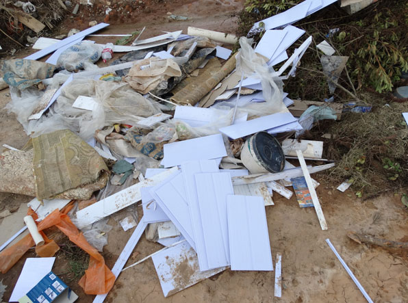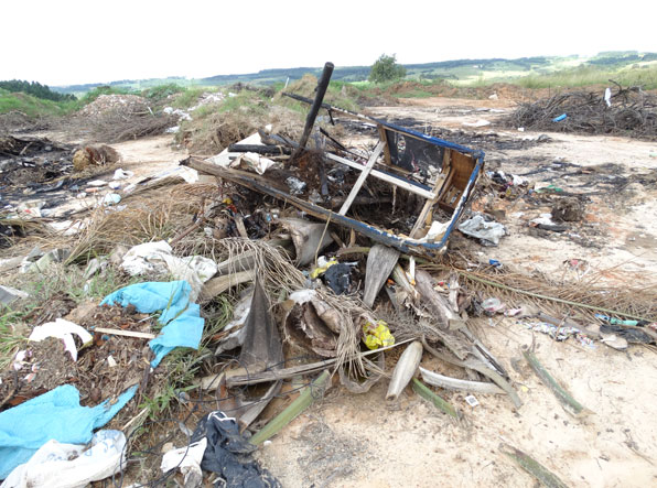 A Gazeta de Palmeira foi até o Distrito Industrial e confirmou a situação. O que se vê no local são vários tipos de materiais, como pneus, metal, peças de veículos, eletrônicos, materiais e livros escolares, brinquedos, roupas, lixo residencial, batatas estragadas, entulhos de construções, entre outros.