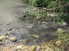 Vazamento de esgoto contamina rio Monjolo e coloca peixes em risco