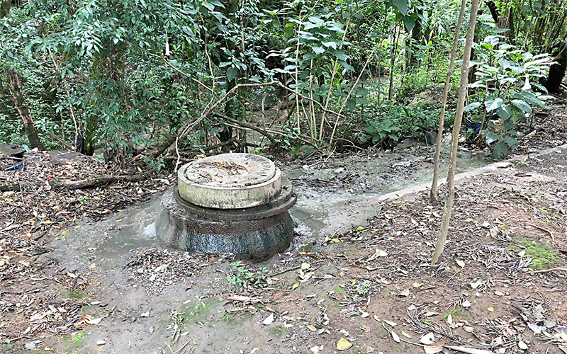 Vazamento em PV de rede coletora leva parte de esgoto para o Rio Monjolo