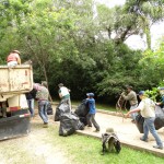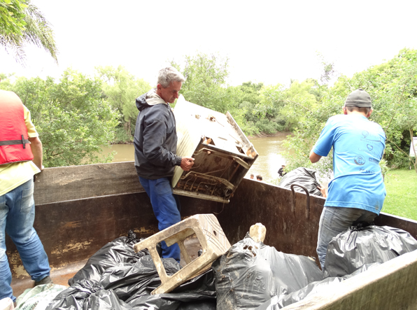 Na sede do Iate Clube, dos barcos foram descarregados desde embalagens pet e plásticos em geral até capacetes, roda de caminhão e uma carcaça de fogão à gás. Isto e mais dezenas de sacos abarrotados de lixo foram embarcados em uma caçamba e transportados até uma unidade de separação para que seja o material destinado à reciclagem.