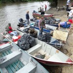 No último sábado (23), dez embarcações e voluntários estiveram em ação, mais uma vez, fazendo a limpeza do rio Iguaçu. Desde as primeiras horas da manhã até perto do meio-dia, foram retiradas do rio mais de meia tonelada de lixo. A maioria absoluta do que foi coletado era material reciclável, mas que as pessoas insistem em continuar descartando de forma irregular, sem consciência de que pode ser destinado ao reaproveitamento.