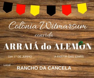 Neste sábado (17) a Colônia Witmarsum realiza o ”Arraiá do Alemon”, uma festa para toda a família, com muita comida, brincadeiras, cavalgadas, passeios de trator, música, shows e chopp artesanal. O evento acontece no Rancho da Cancela Café Colonial e Eventos, que fica na Pousada Campos Gerais, a partir das 12 horas.