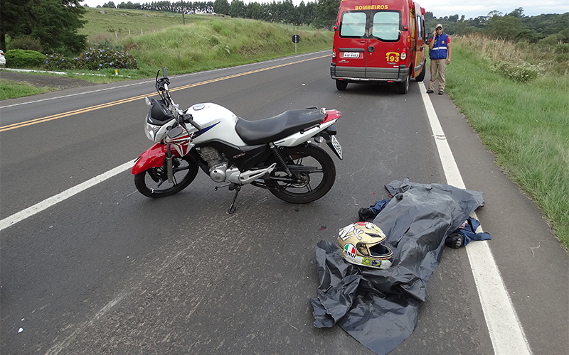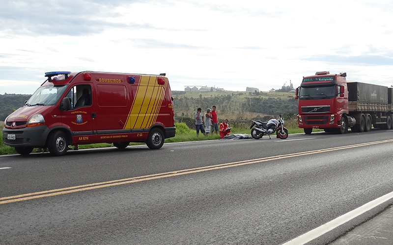 O Corpo de Bombeiros foi acionado para atender um grave acidente aconteceu na tarde desta segunda-feira (19) por volta das 16h30 no km 166 da BR 277, em um trecho de reta, próximo da localidade do Pugas, onde um motociclista acabou morrendo.