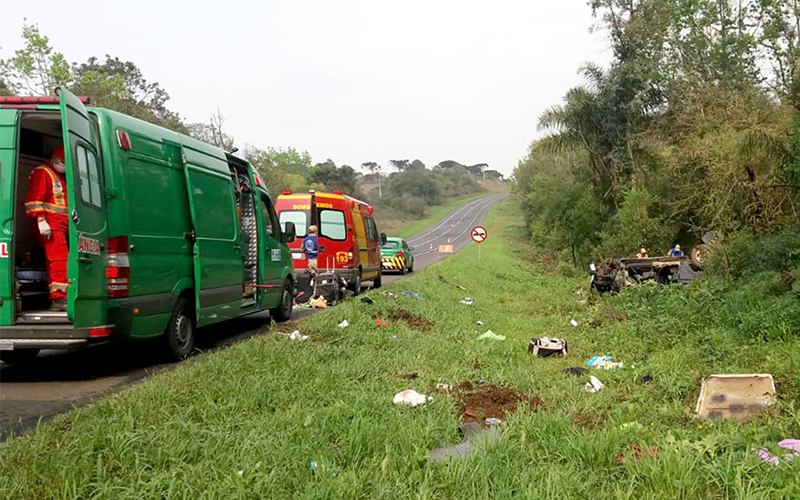 Mais um grave acidente com vítima fatal aconteceu na manhã da última sexta-feira (20) na BR-277 em Palmeira. A equipe do Corpo de Bombeiros se deslocou por volta das 9h30, até o Km 193, próximo a localidade de Queimadas, para atender a um capotamento de uma camionete Ford F250 de cor preta, com placas de Medianeira-PR, que deixou em óbito o motorista, Dalésio Ostrovski de 43 anos. A equipe da Concessionária Caminhos do Paraná esteve no local prestando apoio ao acidente, além da Polícia Rodoviária Federal (PRF). O capotamento foi próximo a dois quilômetros do primeiro acidente na madrugada da sexta-feira, que envolveu um veículo e caminhão e que também deixou uma vítima fatal.
