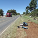 O veículo envolvido no acidente foi uma caminhonete Chevrolet Montana, cor branca, placas AYW-8309, de Ponta Grossa. O automóvel seguia sentido a Palmeira, quando o motorista perdeu o controle da direção e começou a sair da pista. A caminhonete colidiu com um monte de terra às margens da rodovia. Na sequência a Montana virou do lado do motorista e ainda bateu em um barranco na margem direita da rodovia.