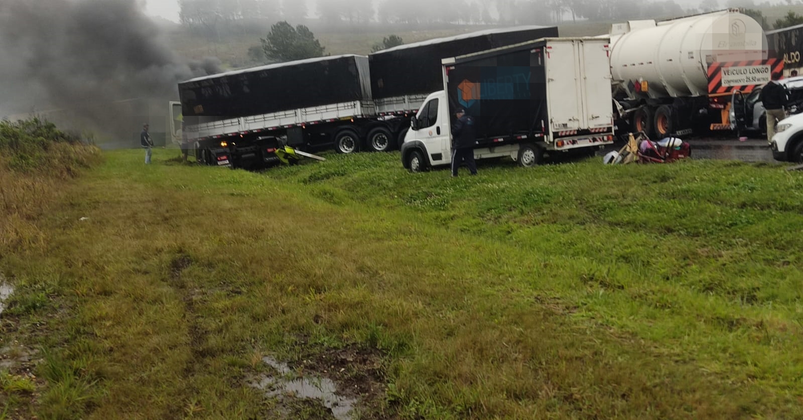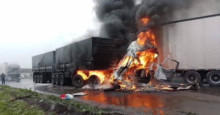 As condições climáticas no momento do acidente eram ruins, com chuva e formação de neblina, houve uma colisão traseira entre um automóvel e um caminhão, dando sequência a várias outras colisões, devido à falta de visibilidade provocada pelas condições climáticas no momento do acidente. Dois caminhões se incendiaram com as colisões. Não houve vítimas relacionadas ao incêndio.