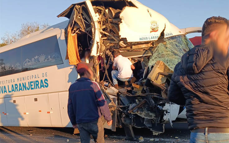 Acidente na BR-277 em Palmeira envolve ônibus que levava alunos e caminhão