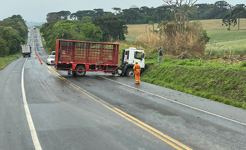 A rodovia BR-277 precisou ser interditada temporariamente até a retirada do caminhão e a liberação do tráfego.