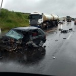 Acidente na BR 277 entre caminhão e carro fere pai e filho gravemente