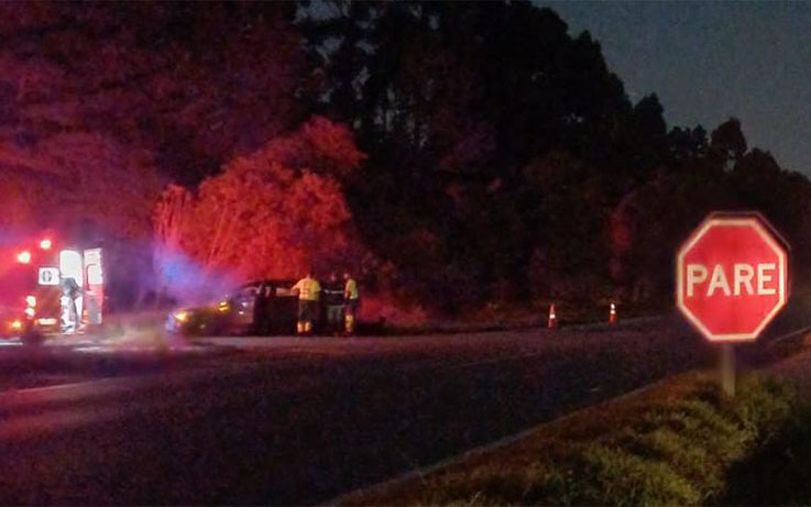 Na noite deste sábado (17), por volta das 21h, a Polícia Rodoviária Federal (PRF) foi acionada para atender um acidente com vítimas no retorno do km 549 da BR-376, sentido norte. Segundo informações, um veículo VW/T Cross, com placas de Castro (PR), avançou a preferencial, resultando em uma colisão transversal com um caminhão Scania R 420, com placas de Guaíra (PR), que não conseguiu frear a tempo.