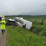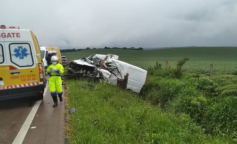 Equipes do Corpo de Bombeiros e do resgate da Via Araucária foram acionadas para atender à ocorrência. Ao chegarem ao local, constataram que o condutor de uma van de carga já estava em óbito.