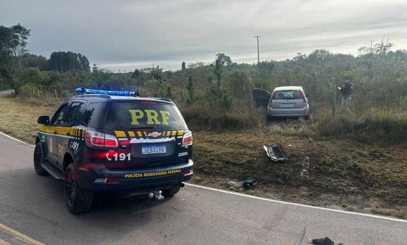 A ocorrência teve início por volta das 08h45, quando uma equipe da PRF tentou abordar um veículo Ford/Fiesta durante fiscalização na BR-277, em São Luiz do Purunã, distrito de Balsa Nova. O condutor desobedeceu a ordem de parada e fugiu, sendo perseguido até colidir com um barranco no km 154 da rodovia próximo a entrada da localidade de Witmarsum em Palmeira, quando o suspeito abandonou o carro e fugiu para uma mata próxima.