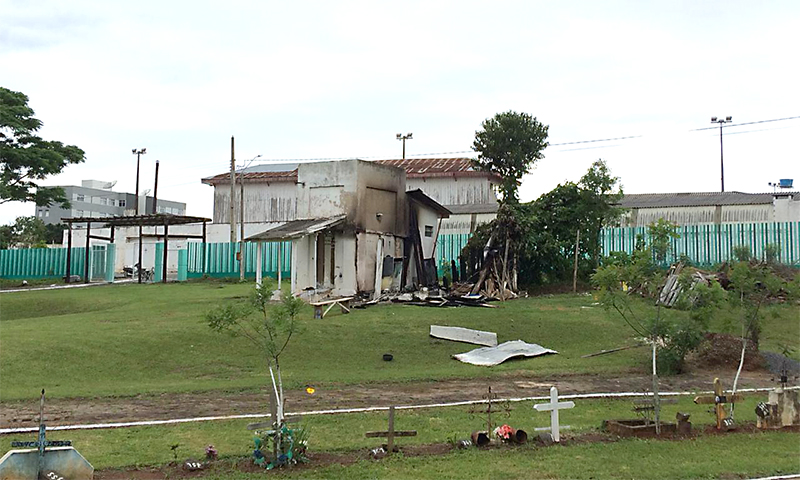 Bombeiros apagam incêndio em edificação dentro do Cemitério Parque Municipal