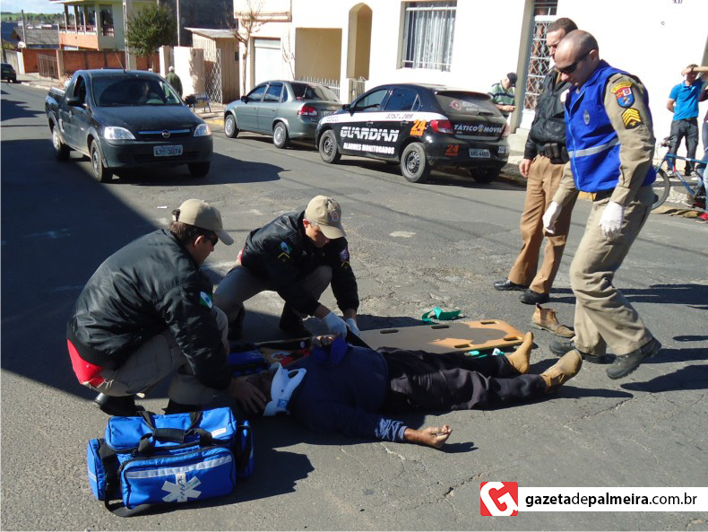 A primeira ocorrência aconteceu às 13h57, na esquina das ruas Vicente Machado e Barão do Rio Branco, onde uma motocicleta e uma bicicleta colidiram. Onildo Batista, de 76 anos, que conduzia a bicicleta, sofreu ferimentos considerados graves, porém sem risco à vida, e foi encaminhado à Santa Casa. A motocicleta Honda XRE 300, placas BDJ-0716, era conduzida por Edinaldo de Souza Chaves.