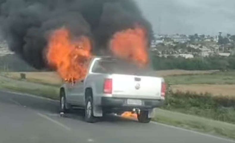 Após o início do incêndio, a caminhonete, que estava estacionada na alça de acesso à BR-277, acabou descendo sozinha devido ao possível comprometimento dos freios. Felizmente, o veículo foi para o lado direito da pista, sem atravessar a rodovia e sem atingir outros carros.