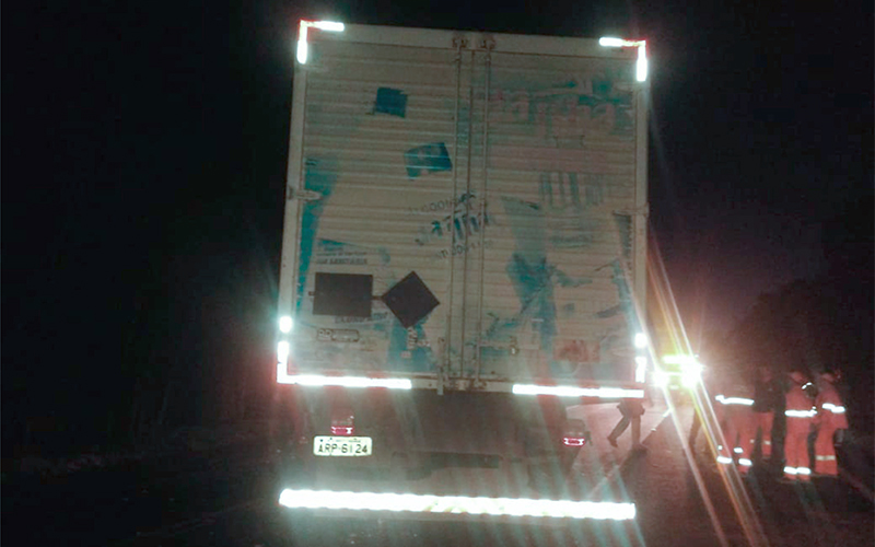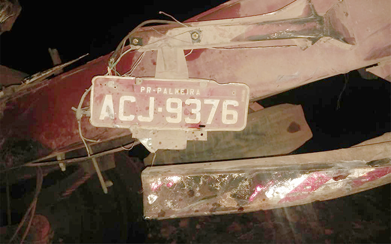 O caminhão que parou na pista por problema mecânico é um Mercedez Benz de cor vermelha com placas ACJ 9376 de Palmeira/PR, e estava carregado com tijolos e cerâmica e faria entrega na região, e era dirigida por Andre Lucas Cardoso de 26 anos. Já, o caminhão que colidiu na traseira do primeiro, é um Volkswagen Constellation VW 24-250 de cor branca, baú com placas ARP 6124 de Almirante Tamandaré/PR, que estava carregado com querosene, vinagre e água sanitária e seguia para cidade de Cascavel e era dirigido por Pedro Riva Soares da Silva de 58 anos.