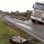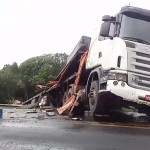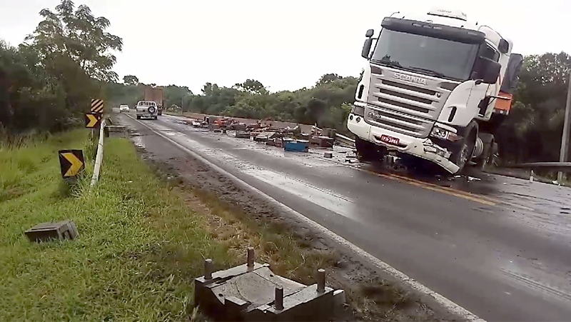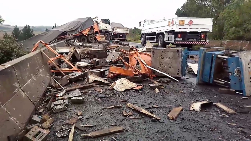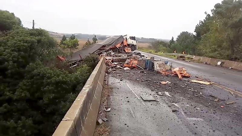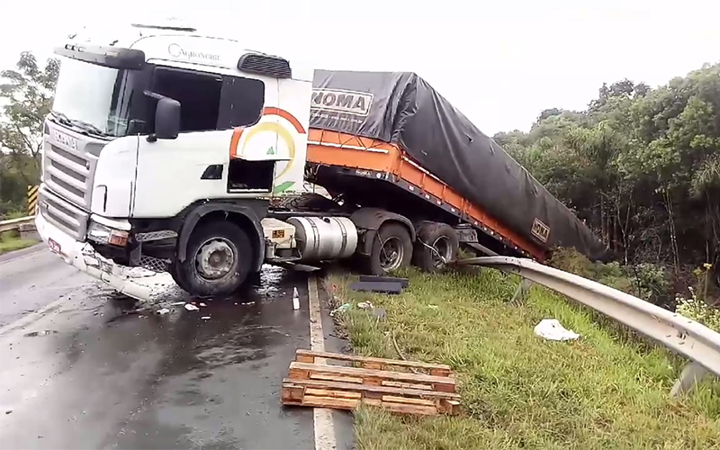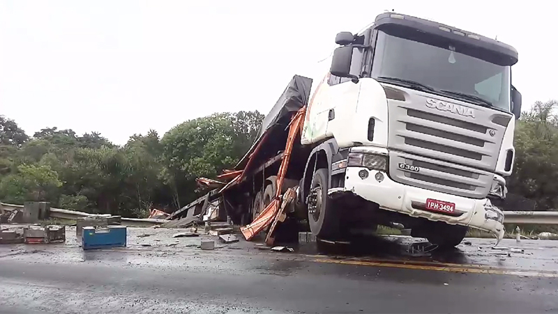 Segundo o motorista Cleidir Luiz, da cidade de Erechim/RS, o caminhão carregava uma carga de moldes de injetora e vinha de Sorocaba/SP. Ele comentou que estava descendo sentido à ponte do rio Caniú, e que veio segurando a carreta no freio, e ao frear mais forte e pelo asfalto estar molhado, ficou escorregadio e a carga acabou se deslocando, o que jogou a traseira da carreta. O caminhão parou a poucos metros da ponte sobre o rio Caniú. “Ainda bem que ninguém se machucou, porque já ouvi relatos de algumas pessoas contando de acidentes que acontecem aqui”, disse.