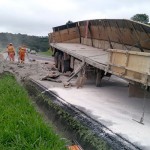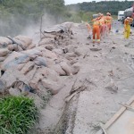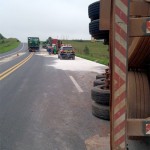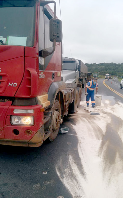 A PRF registrou na manhã da última terça-feira, (26) de fevereiro no Km 163 + 200 metros, na BR 277, próximo a localidade de Pugas de Cima, um acidente que envolveu um caminhão Iveco Stralis de cor vermelha com placas AIO 9189 de São Miguel do Iguaçu-PR e que tracionava com a carreta de placas AEG 6521 de Serranópolis do Iguaçu-PR que estava carregada com uma carga de sacos de cimento.