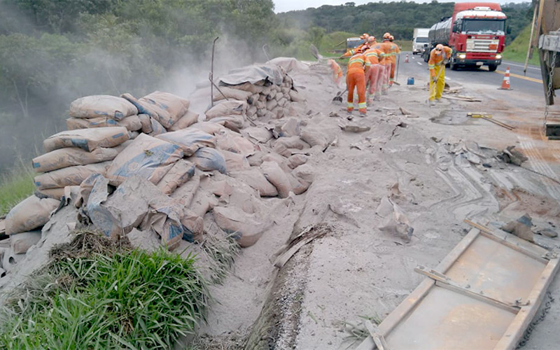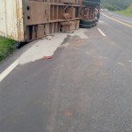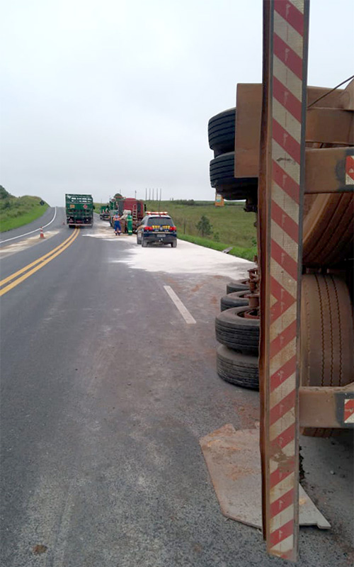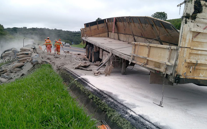 O caminhão trafegava no sentido Curitiba a Palmeira, quando teria perdido o controle, fazendo com que a carreta tombasse sobre a pista. Segundo informações os motivos do acidente, teria sido porque estourou o pino que sustenta a carreta junto ao cavalinho, tendo a carreta tombado, espalhando toda a carga de cimento tendo o caminhão ficado sobre a pista. O motorista Dirceu não se feriu no acidente e reclamou que parte da carga teria sido saqueada. Houve apenas danos materiais de grande monta na carreta e na carga. Já, o trânsito ficou lento no local e a pista precisou ser interditada em certo momento para a retirada da carreta tombada.