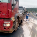 Caminhão carregado com sacos de cimento tomba na BR 277 em Palmeira