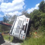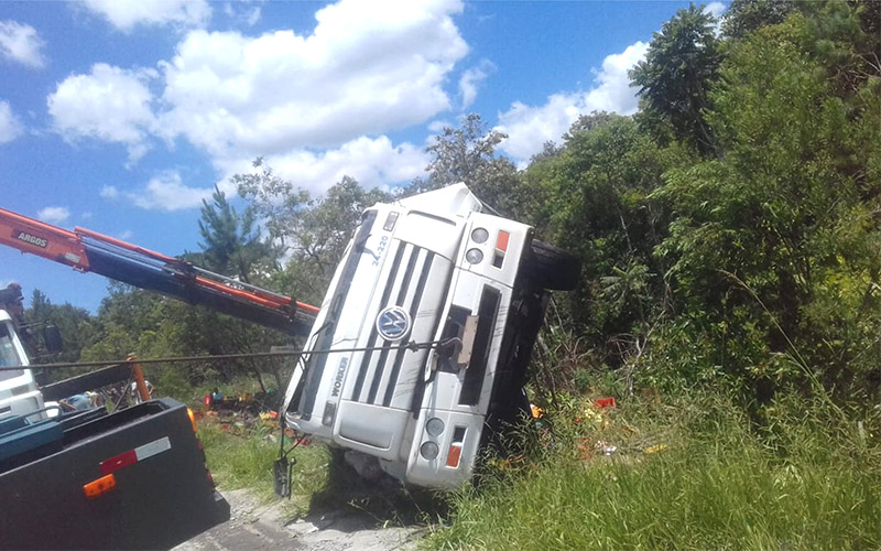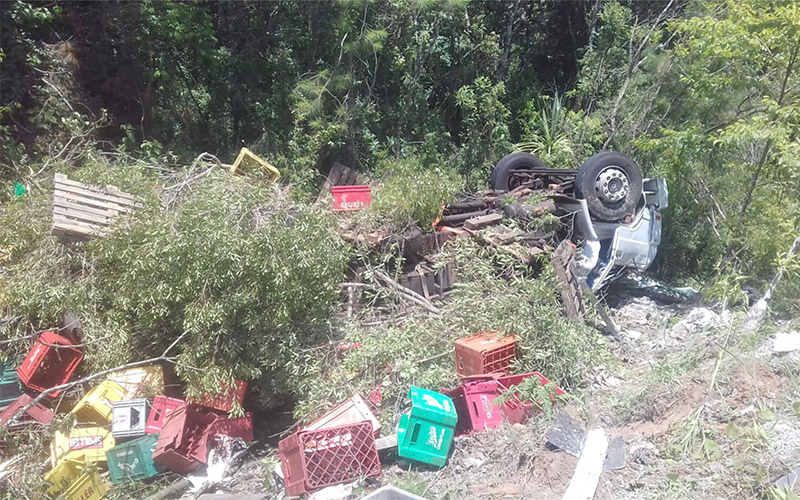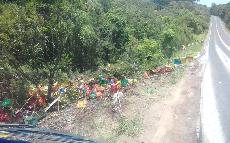 O caminhão VW 24.220 Euro3 Worker, de cor branca com placas da cidade de Maringá-PR, era dirigido por um homem de iniciais P.A.D. de 30 anos estava carregado de bebidas e iria para a cidade da São Mateus do Sul. A carga de garrafas de vidro que era acondicionada em engradados ficou toda destruída e espalhada às margens da rodovia.