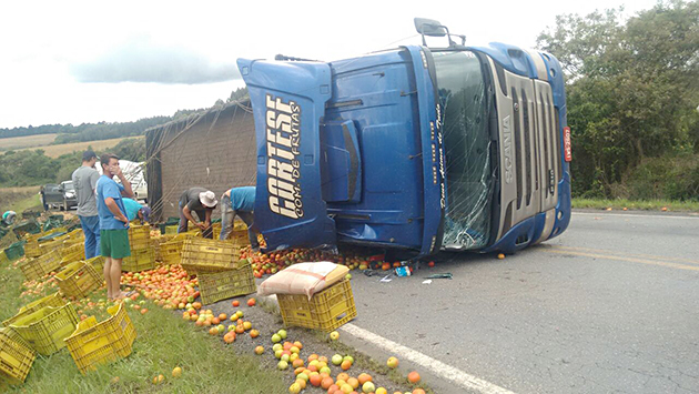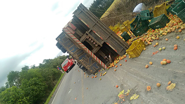 Segundo informações o motorista se perdeu após uma curva vindo a tombar o caminhão, tendo sua carga que era de caixas de tomates toda espalhada ao lado da pista. Já o motorista do caminhão saiu ileso do acidente, sem precisar de atendimento por parte dos bombeiros.