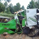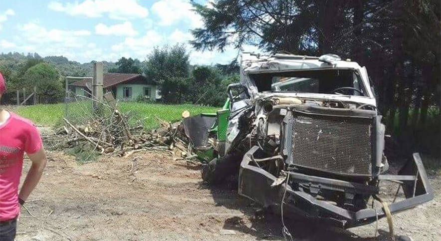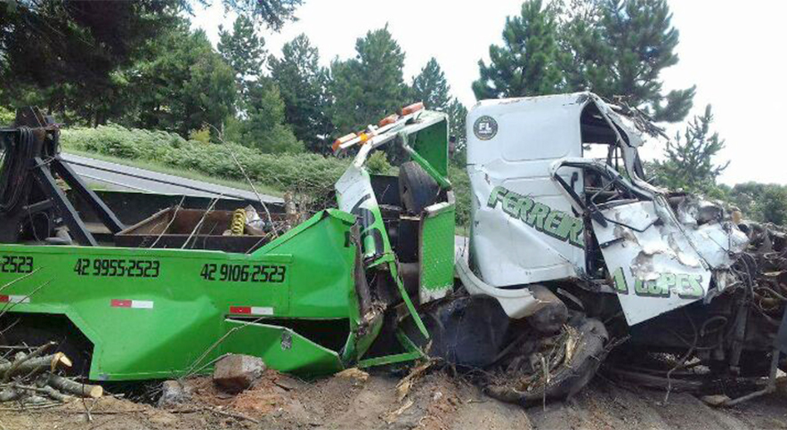 Apesar do caminhão ficar praticamente destruído, o motorista e um passageiro sofreram ferimentos leves.