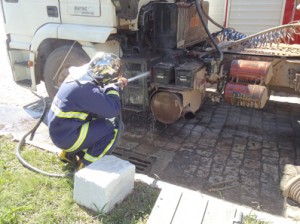 No final manhã de sexta-feira (19) um caminhão pegou fogo no pátio de um posto de combustíveis, localizado na PR 151, no bairro Farajala Bacila. As chamas rapidamente controladas pelo Corpo de Bombeiros de Palmeira que atendeu a ocorrência.