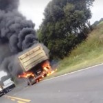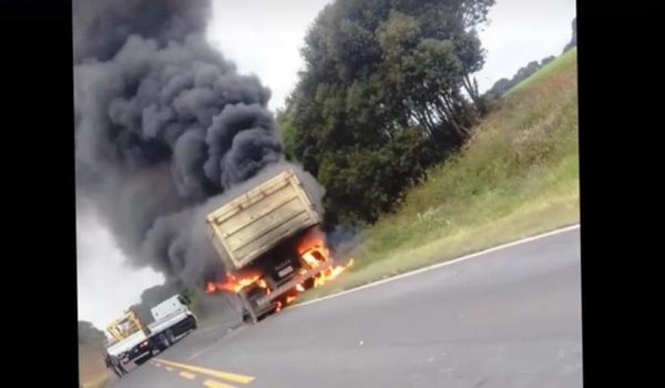 Caminhão pega fogo na rodovia PR 151 e motorista fica ferido levemente