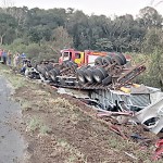 Mais um acidente grave na PR-151 com uma vítima fatal. Na tarde da última quarta-feira (31) de julho, por volta das 17 horas, a equipe do Corpo de Bombeiros de Palmeira se deslocou até a PR-151 no km 411, na divisa entre os municípios de Palmeira e São João do Triunfo, entre as localidades de Faxinal dos Silva e Água Comprida para atender a um capotamento de um caminhão com uma vítima fatal. Além do Corpo de Bombeiros de Palmeira, a equipe da Polícia Rodoviária Estadual de São Mateus do Sul também prestou atendimento ao acidente.