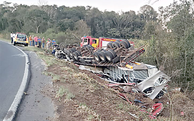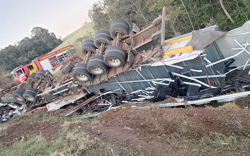 Segundo informações da PRE, o motorista identificado como Sidemar Kiczinski, de 47 anos, conduzia uma carreta Iveco Stralis, de cor branca, com placas MGS-9307 de Concórdia-SC, acabou morrendo após perdeu o controle da direção em uma curva, quando acabou saindo da pista e capotando às margens da rodovia. A carga que seria de equipamento industrial ficou bastante danificada devido ao capotamento do caminhão.