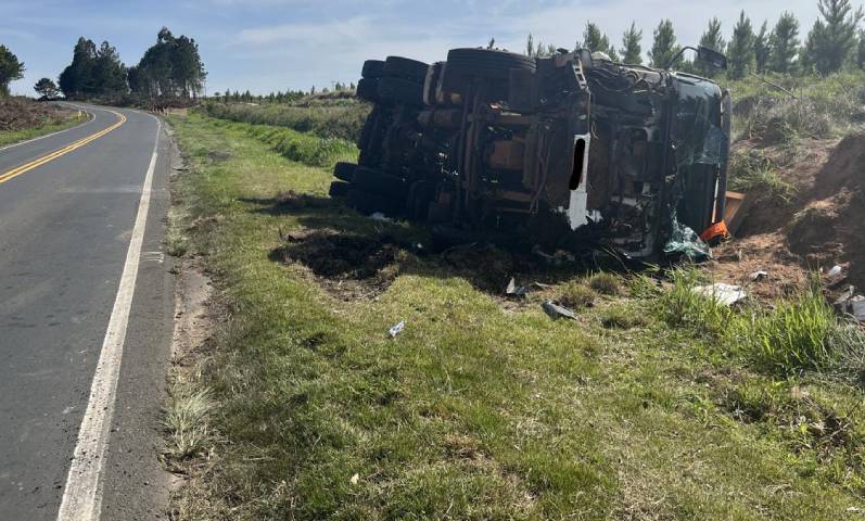 Um caminhoneiro de 62 anos ficou ferido após o tombamento do caminhão que conduzia na PR-151, no trecho entre Ponta Grossa e Palmeira, na tarde desta sexta-feira (24).