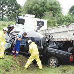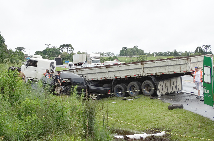 O acidente envolveu uma caminhonete Chevrolet S10, com placas MBO 2865 de Curitiba que seguia no sentido Curitiba e o caminhão Volvo placas AFL 6716 de Mandirituba-PR, que estava carregado com chapas de aço que seriam descarregadas na empresa CCS em Palmeira.