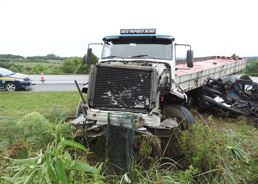 Gelson de Oliveira Silva, de 36 anos, motorista da S10, morreu na hora. Equipes do Corpo de Bombeiros de Palmeira e da Concessionária Caminhos do Paraná estiveram no local, mas os socorristas já encontraram a vítima em óbito. O motorista do caminhão Rodinei de Souza de 38 anos não se feriu. O corpo de Gelson foi retirado de dentro do veículo e entregue ao Instituto Médico-Legal (IML) de Ponta Grossa, onde passará por exames de necropsia.
