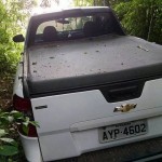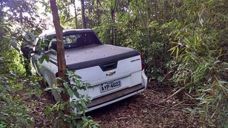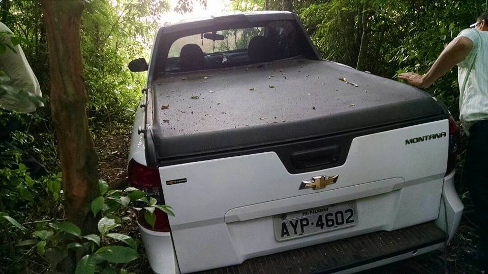 Uma camionete Chevrolet/Montana LS, de cor branca, placas AYP 4602 de Palmeira/PR, foi encontrada abandonada num matagal no Distrito de Guaragi no interior do município de Ponta Grossa nesta quarta-feira (16).