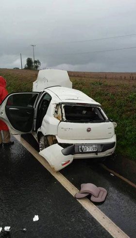 Um acidente automobilístico na BR 277, no local conhecido como Vaca Morta, deixou duas pessoas feridas e uma morta, na tarde de quarta-feira (1º). O veículo que estavam as três pessoas, um Fiat Punto, com placas AXD-7159, de Prudentópolis, capotou. No momento do acidente chovia forte.